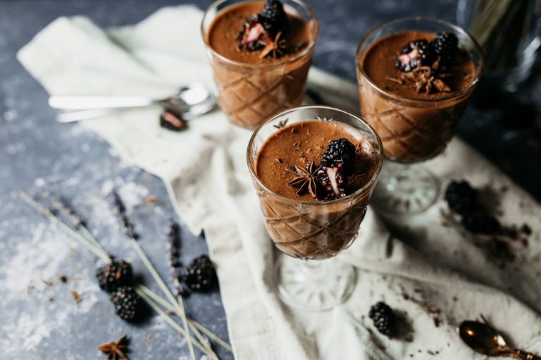 Smooth and silky mousse with dark chocolate and just a suggestion of bourbon.