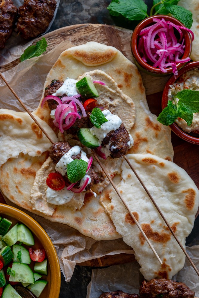 Savour the exquisite flavours of a lamb kofta, where tender lamb mince is seasoned with aromatic spices and grilled to perfection, delivering a delectable blend