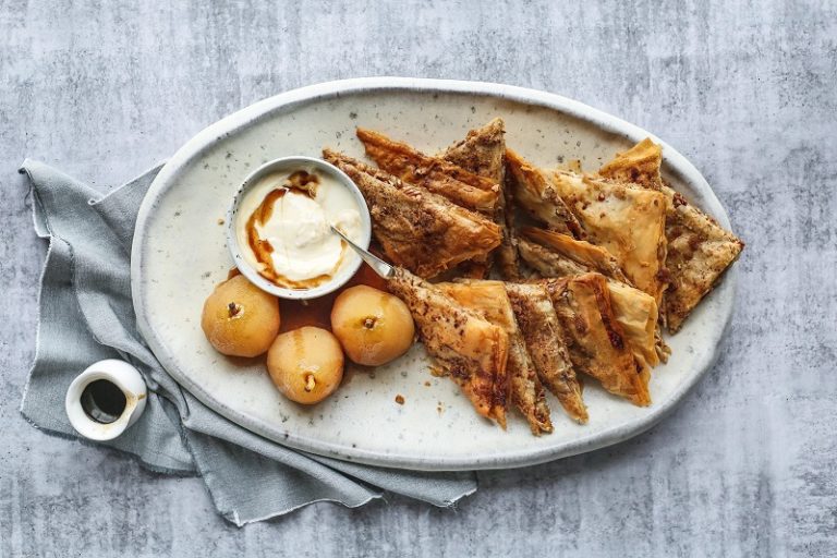 A must-have Indian side dish with a little spice, not-so-traditional filo pastry and refreshing dressing.