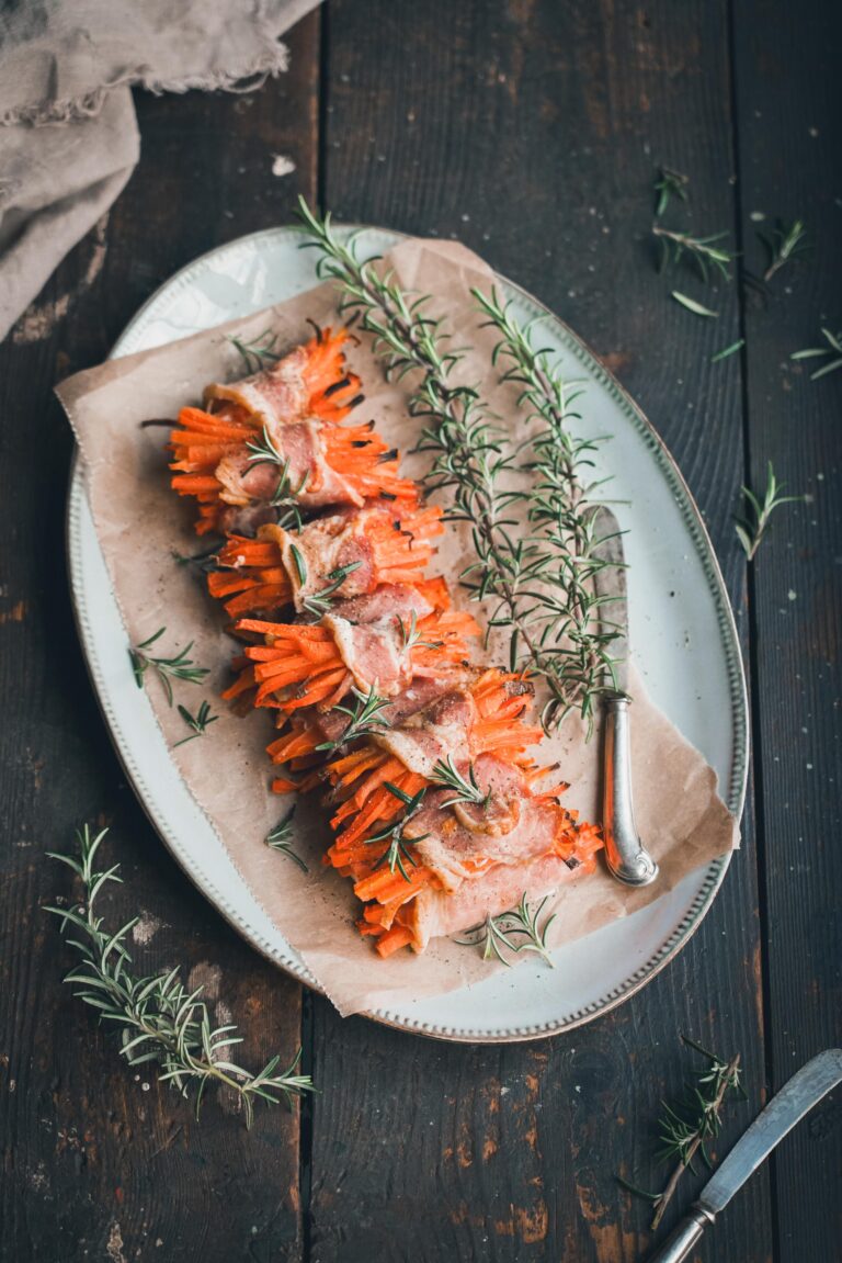 This baked celeriac gratin combines creamy layers of earthy celeriac, tender potatoes and rich pancetta with hints of rosemary. Perfect as a cosy side dish,