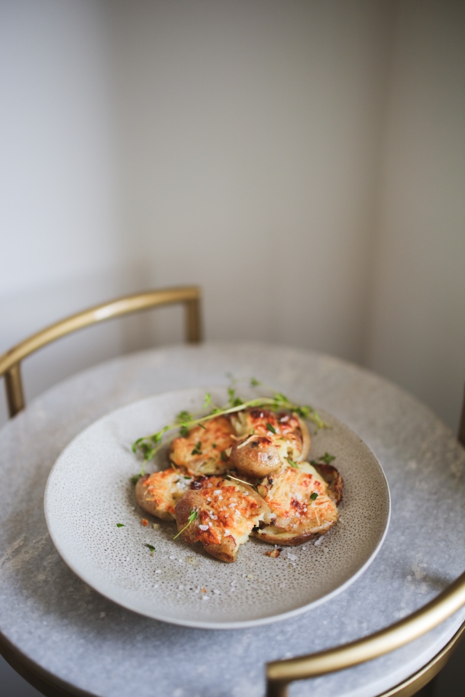 These crispy, flavourful potatoes with a garlic-parsley coating and a rich parmesan topping are the perfect side dish to any meal.
