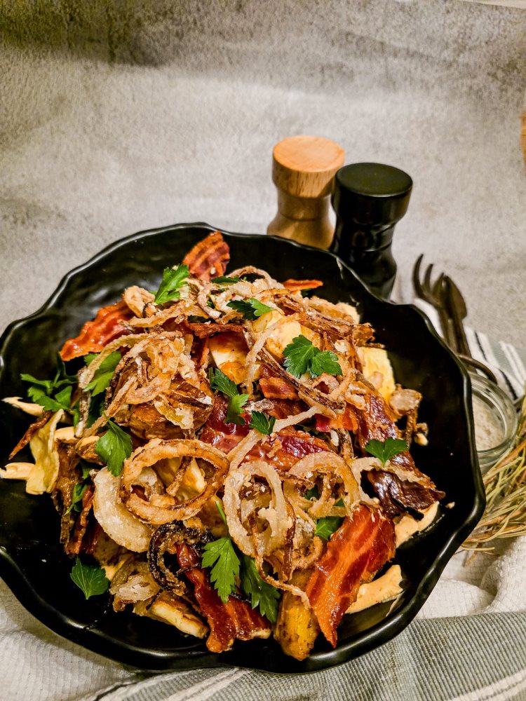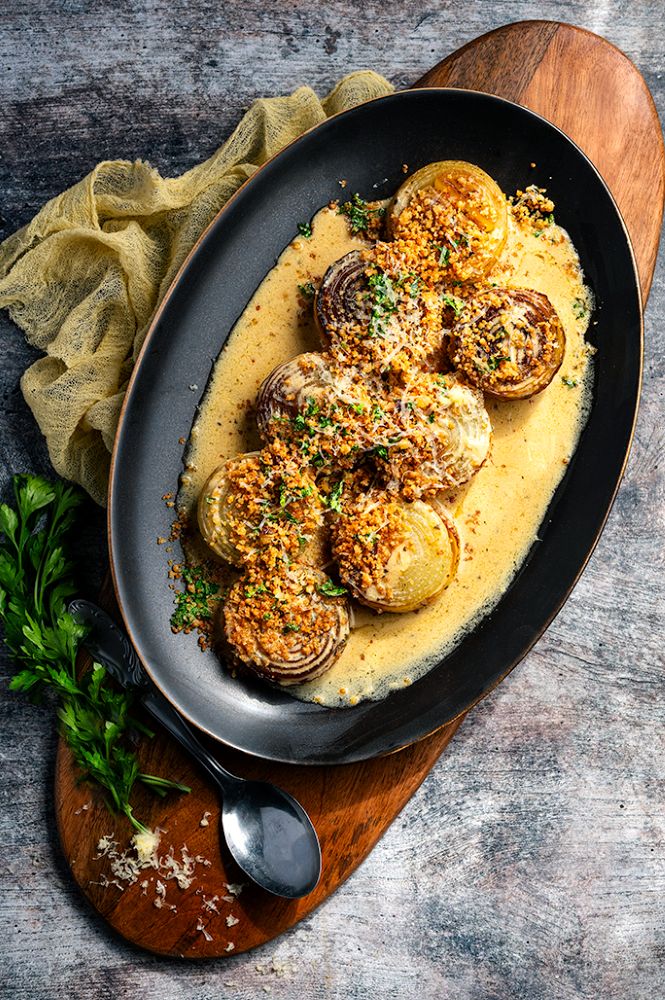 This baked celeriac gratin combines creamy layers of earthy celeriac, tender potatoes and rich pancetta with hints of rosemary. Perfect as a cosy side dish,