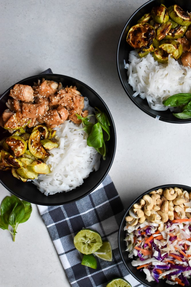 A tasty noodle and chicken meal bursting with Asian flavours, paired with a crunchy fresh side salad.