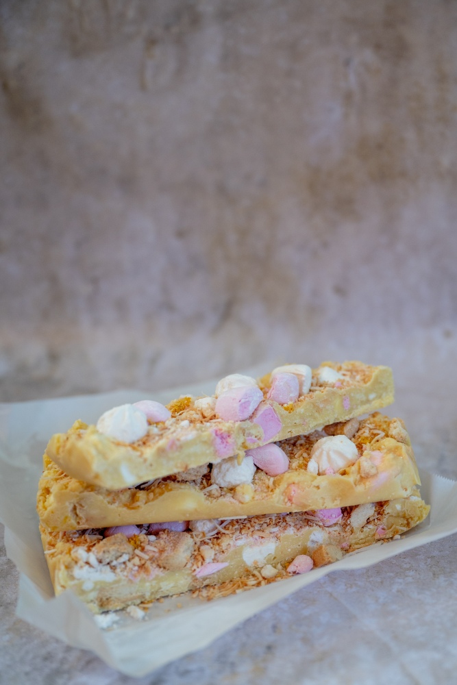 A sweet and smooth pistachio filling with a crunch of crisp kataifi surrounded in dark chocolate.