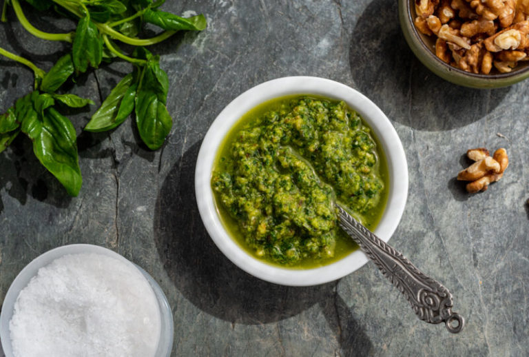 An easy pesto, delicious on just about anything from pasta to salad.