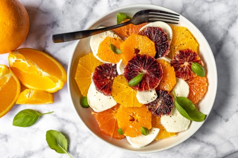 Caprese salad is not just for summer tomatoes anymore. Try this citrus version for a change – it is refreshingly bright and beautiful.