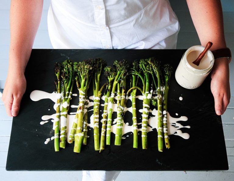A bright side dish that is lifted in flavour by the unique mushroom mayonnaise.