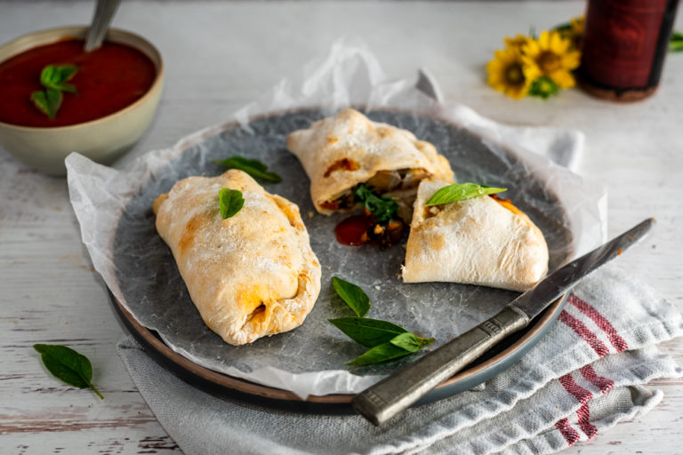 Portable pizza! Fill with anything you want but preferably with plenty of veggies and cheese.
