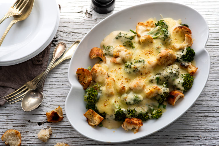 Super tasty broccoli bake. Serve in individual ramekins or in one large serving dish.
