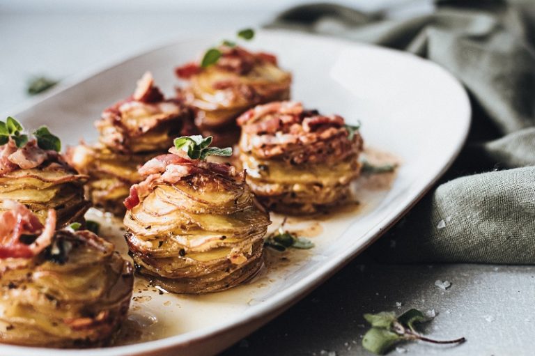 Crispy, cheesy and buttery; these petite potato stacks are the perfect way to add a bit of pizzazz to the classic roast dinner. The addition