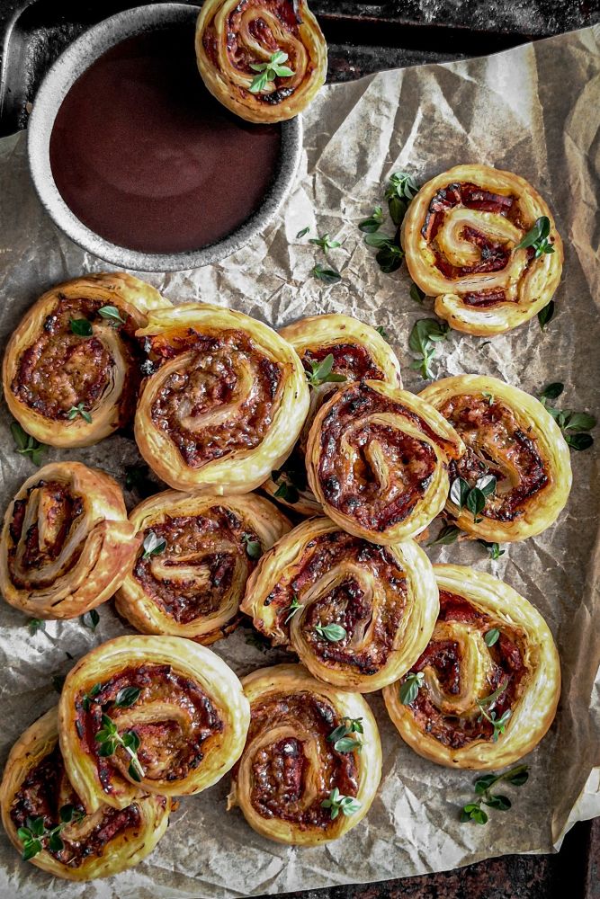 Mussels and chorizo in a herby white wine sauce to serve with drinks.
