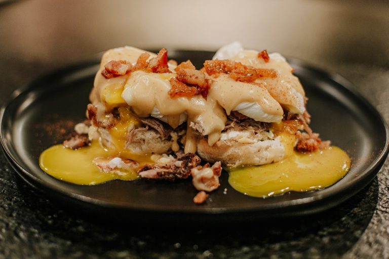 This recipe is a Southern twist on the classic Eggs Benedict, served on a biscuit instead of an English Muffin, and pulled pork taking the