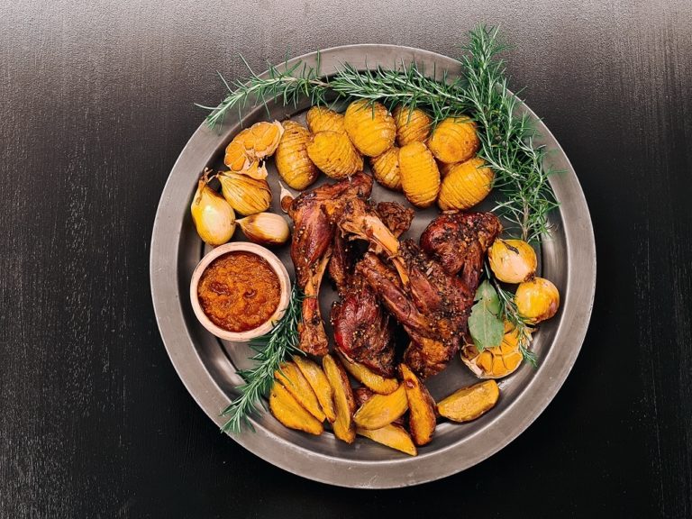 Succulent and fork tender lamb shanks, marinated and cooked in a robust red wine marinade. Served with a rich, glossy sauce made from the marinade,