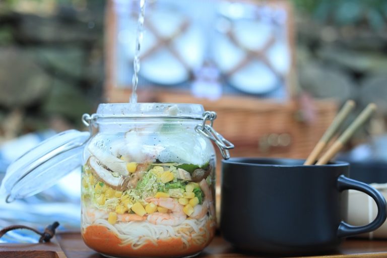 These instant noodle soups are the perfect on-the-go work lunch and packed full of raw veggies, quick-cook noodles & shredded chicken! Ideal for meal prepping at