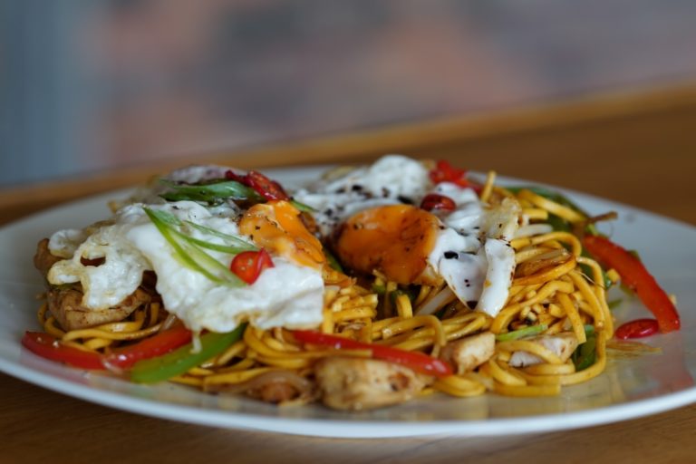 A classic Chinese stir-fry – silken egg noodles and colourful fresh vegetables, in a tangy homemade chow mein sauce. Adding protein of your choice will