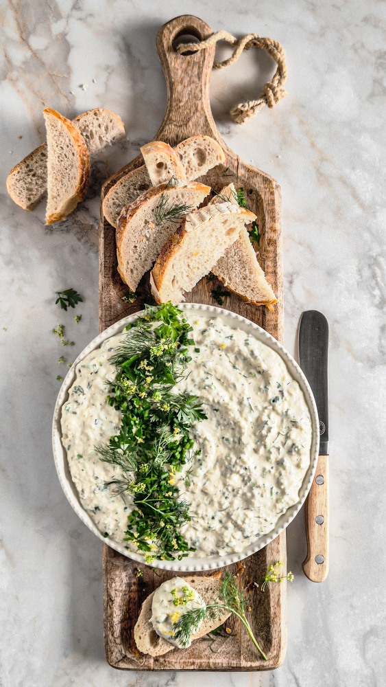 This creamy dip, full of fresh crisp kale, is a refreshing appetiser! Pair it with fresh vegetables and toasted baguette.