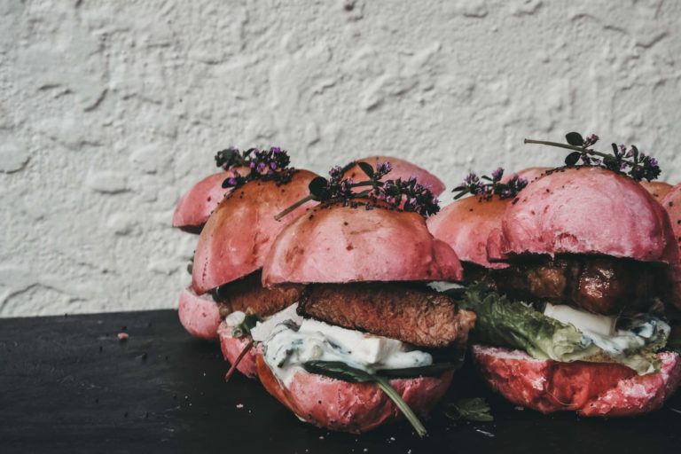 Taking the classic flavours of lamb, tzatziki and feta, this slider goes to the next level with beet-coloured slider buns.