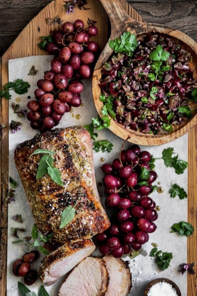 Roast Pork with Balsamic Grapes & Zingy Grape Salsa