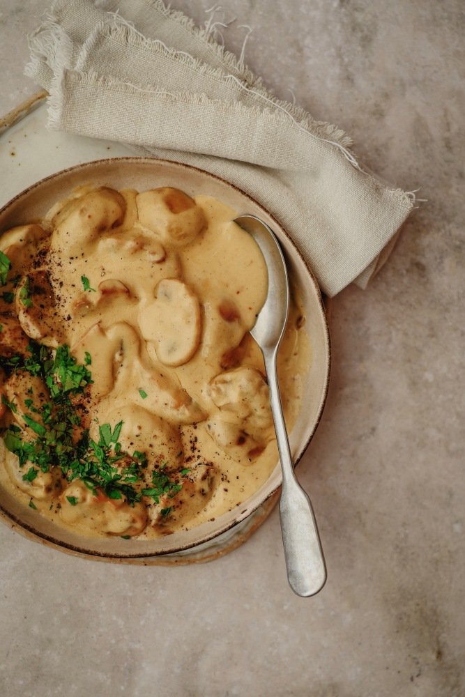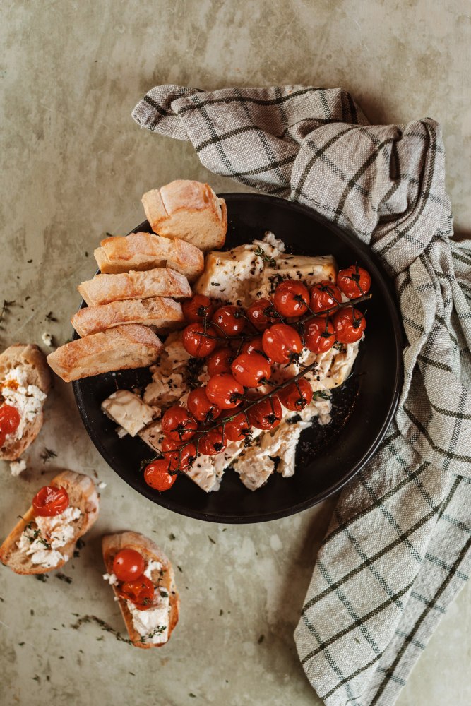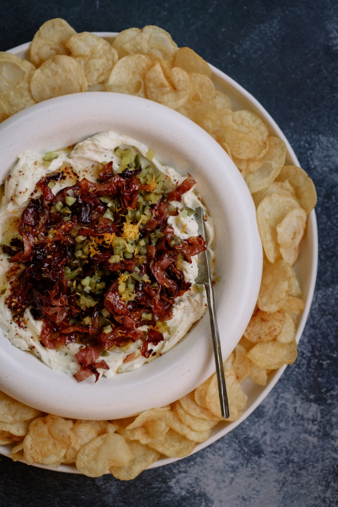 A base of soft creamy whipped cheese with a baked mortadella topping.