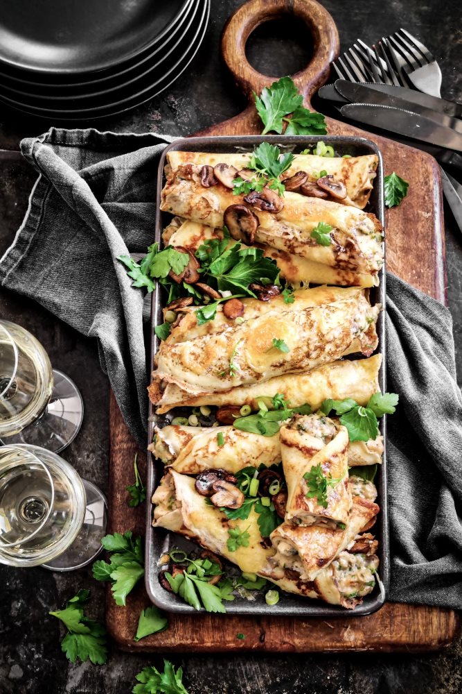 These delicious pancakes are filled with shredded chicken and mushroom. Ideal for a light but nutritious meal and a great way of using up leftover