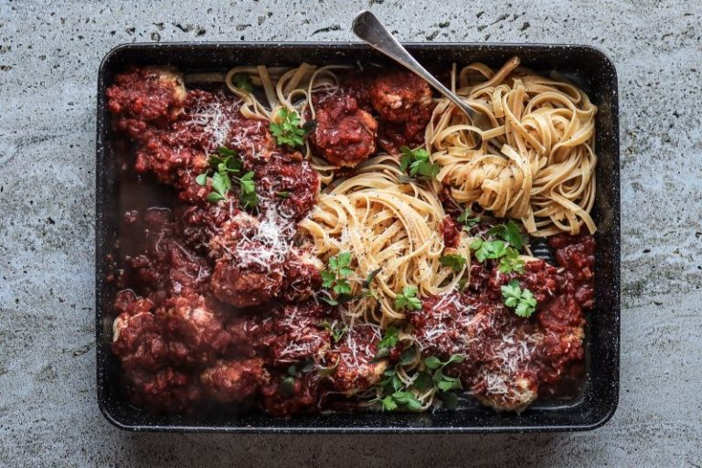 These Tuscan-inspired meatballs are made with minced pork and bacon and served in a rich tomato sauce. The ricotta makes them soft and light, while