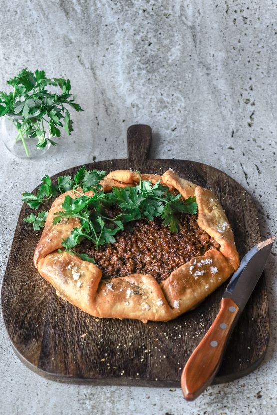 This tasty lamb dish is excellent for lunch or main meal. With a light pastry shell filled with a herby meat sauce it is a