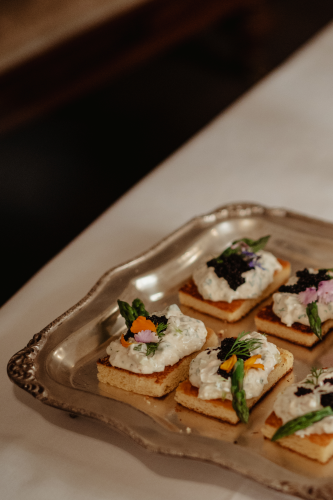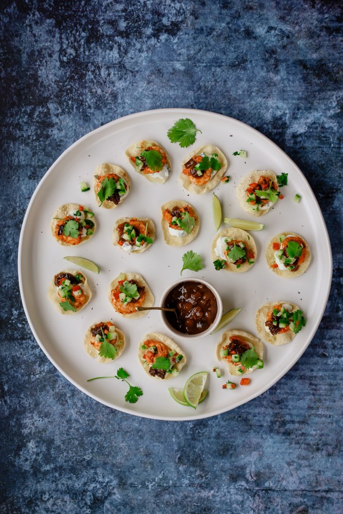 Crispy pappadums topped with Indian-spiced prawns and a dollop of tangy chutney for a bite full of vibrant flavour.