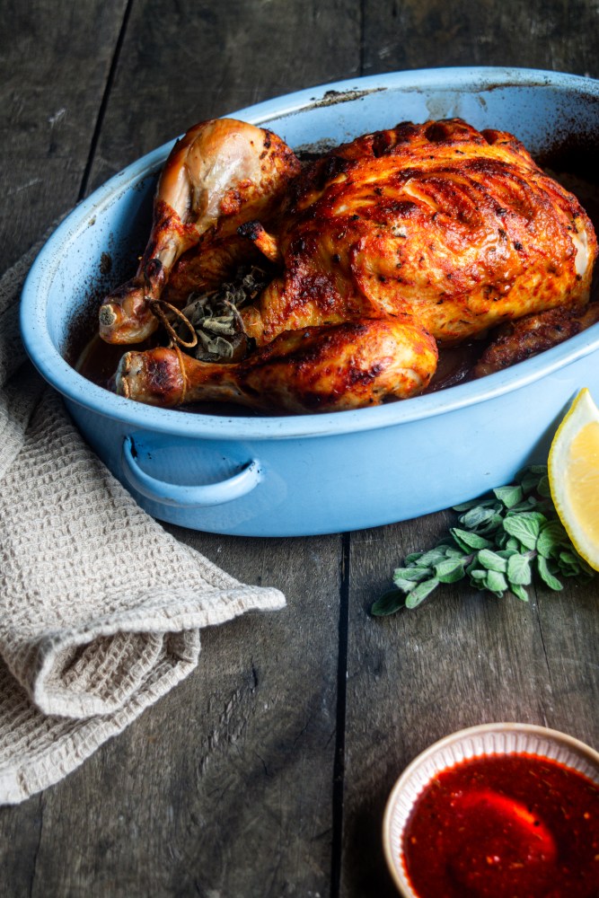 This gochujang-based marinade adds a smoky, earthy depth and a touch of sweetness to roast chicken. The recipe is for a whole roast chicken, but