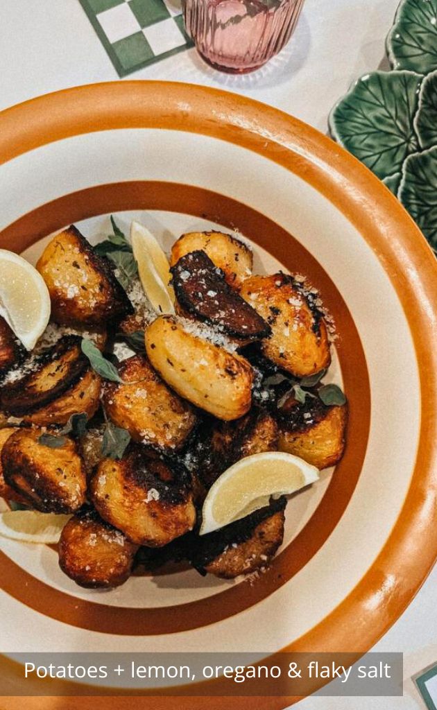 Curry leaves or bay leaves- Lightly fry leaves in oil, add a pinch of salt and serve amongst potatoes.