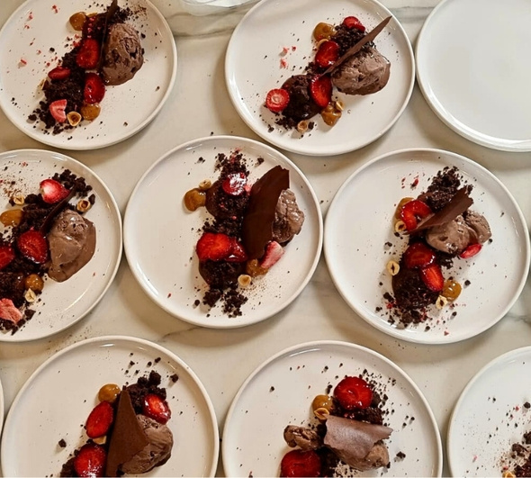 A dusting of something with visual contrast can add another dimension to your dish. Think black salt against a white plate, or white salt on a black plate. Some spices or mixes such as paprika or dukkah can also enhance a dish.